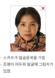 선명한(해상도 300DPI 권장) 사진을 제출해야 함 - 흐릿하거나 픽셀이 깨지는 저해상도 사진,